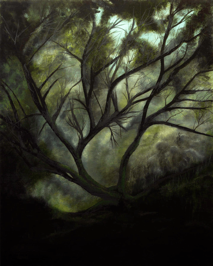 Juror Sonya Jones “kept coming back to this work,” as it reminded [her] of romanticism landscapes, with its moody atmosphere, shades of green and play of light.”